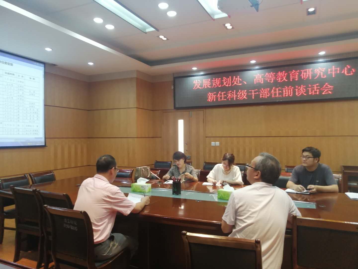 2020年7月29日上午,发展规划处、高等教育研究中心在中込会馆第二会议室召开新任科级干部任前谈话会和暑期工作安排会,发展规划处处长逯忆主持,全体同志参加。