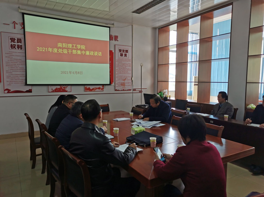 为贯彻落实学校2021年全面从严治党工作会议精神,切实抓好全校党风廉政建设责任制落实,2021年4月8日上午,副校长张世海召集分管联系的发展规划处、教务处、教学评估与质量监控中心、土木工程学院、建筑学院的处级干部,开展集体廉政谈话,与中层正职签订党风廉政建设责任书。