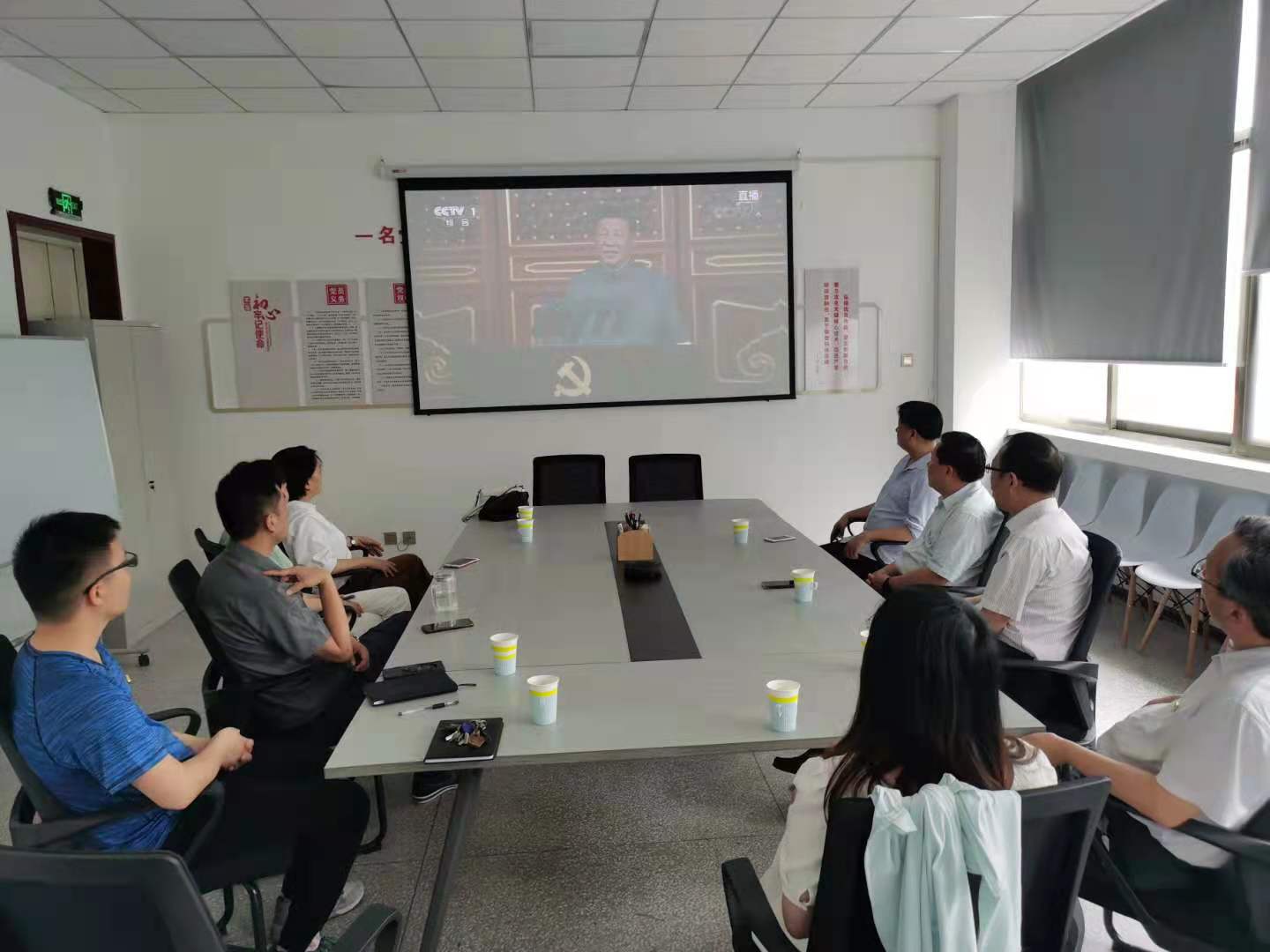 2021年7月1日上午8点,郑州大学南阳研究院、研究生与学科建设处、发展规划处在领创空间四楼集体观看庆祝中国共产党成立100周年大会,全体同志参加。