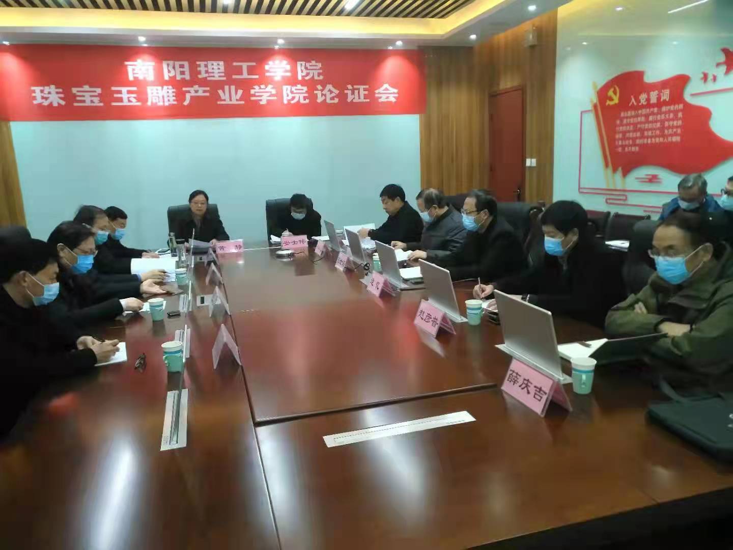 河南省学位委员会第四届学科评议组艺术学组召集人、河南省普通高校美术学类教学指导委员会主任委员魏小杰,教育部高等学校设计学类专业教学指导委员会委员王晓予,国家级非物质文化遗产“镇平玉雕”代表性传承人仵海洲,南阳独山玉雕刻研究所所长刘晓强,平顶山学院发展规划处处长高向丽等五位专家逐一发表意见和建议,对设立南阳理工学院珠宝玉雕产业学院表示肯定,认为有助于创新高素质应用型人才培养模式,服务镇平玉产业高质量发展,助力南阳副中心城市建设,并且符合上级政策导向,具备较好建设基础,十分必要、切实可行。五位专家还就政策要求、办学规模、专业设置、师资队伍、行业需求、科研创新、人才培养、未来规划等提出了意见建议。