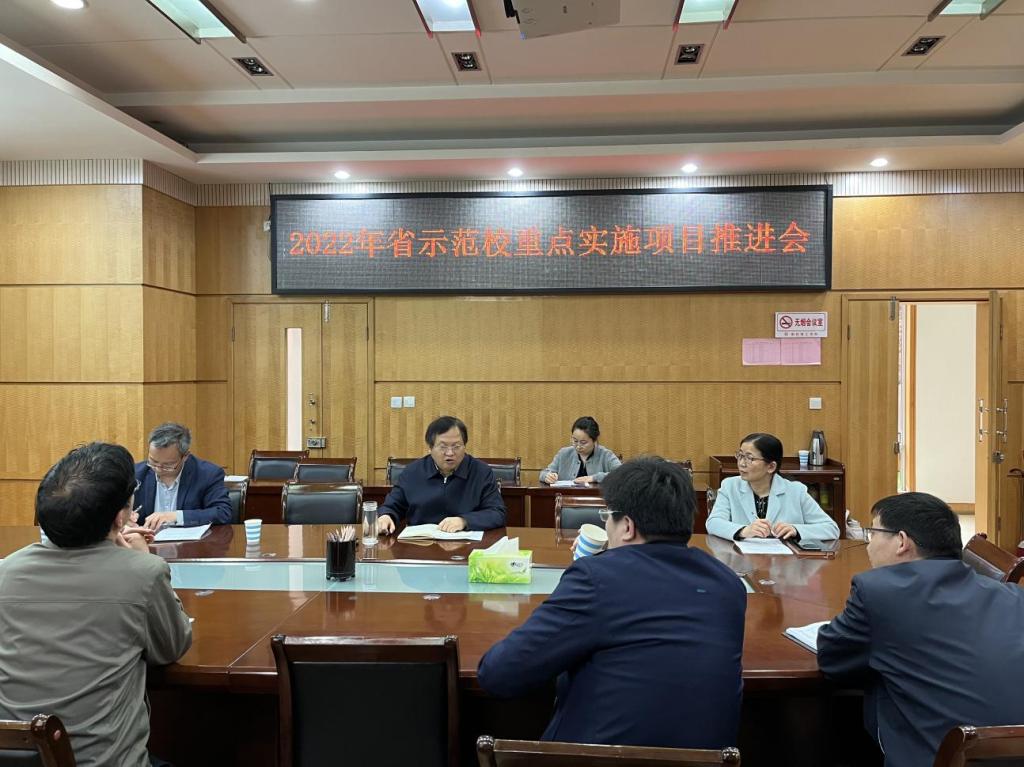 副校长张世海指出,示范校建设既是我省深入推进高等教育综合改革的重要内容,是加快应用技术人才培养、提升高校服务能力的重要举措,也是我校提升人才培养质量、服务地方经济社会发展,建设高水平应用型理工大学的重要平台。针对下一步工作,他提出四点要求:一是要统一思想,凝聚共识,充分认识示范校建设的重要意义。示范校建设是一项综合工程、系统工程,需要按照建设规划和实施方案,精准发力,持续建设。二是各项目组要树立全新理念、提高站位、找准方位、明确定位,立足副中心城市建设需要,系统谋划顶层设计和制定实施方案,明确建设指导思想、建设目标、主要任务、责任分工,制定时间表、路线图,将工作任务落实到具体人员,统筹稳步推进建设。4月30日前向学校提交实施方案。三是要高度重视,相互配合。各项目组要围绕建设指标,挖掘亮点,凝炼特色,对标对表加快推进建设;发展规划处要根据示范校建设要求,加强协调与督导。定期召开工作推进会议,定期进行工作督导,客观评价建设成效,深入剖析问题原因,及时提出改进措施,统筹稳步推进建设,确保建设成效。四是要设立示范校建设专项研究项目,对示范校建设实践中的关键问题、难点问题进行专项理论研究和实践探索,为深度推进省示范校建设提供理论支持。会议听取了新零售产业学院、智能制造专业集群、光电信息专业集群、智慧康养专业集群、应用型人才培养模式改革与创新工程等5个示范校重点实施项目负责人,关于项目前期推进措施、取得成效、存在问题及下一步工作任务等情况的汇报,对前期的工作给予肯定。