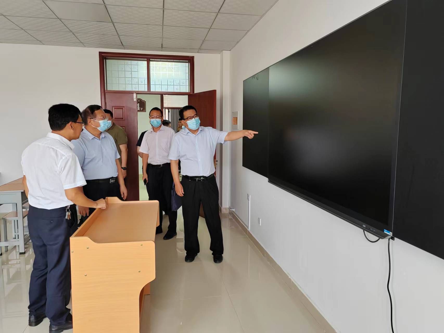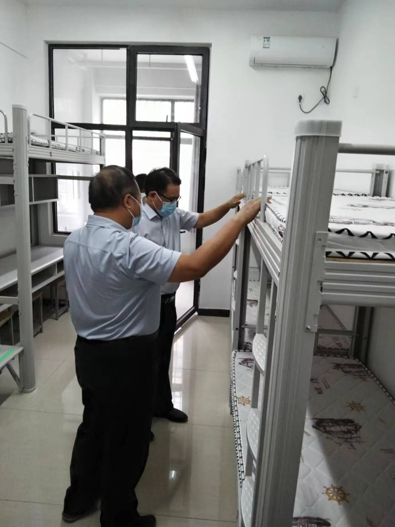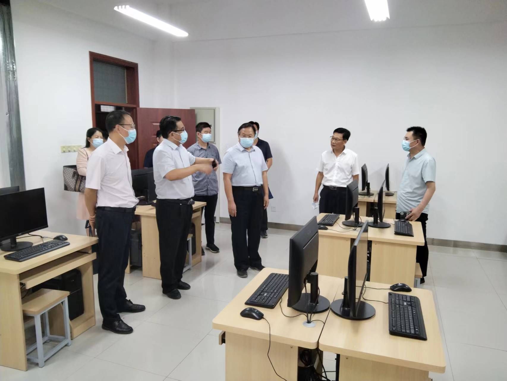 座谈会前,张世海、葛晨光一行实地考察了教室、实训室、图书馆、食堂、学生宿舍、体育场等。
