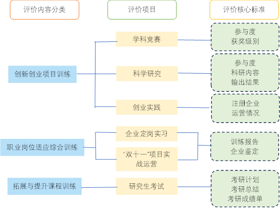 图1 商科类综合训练课程评价内容