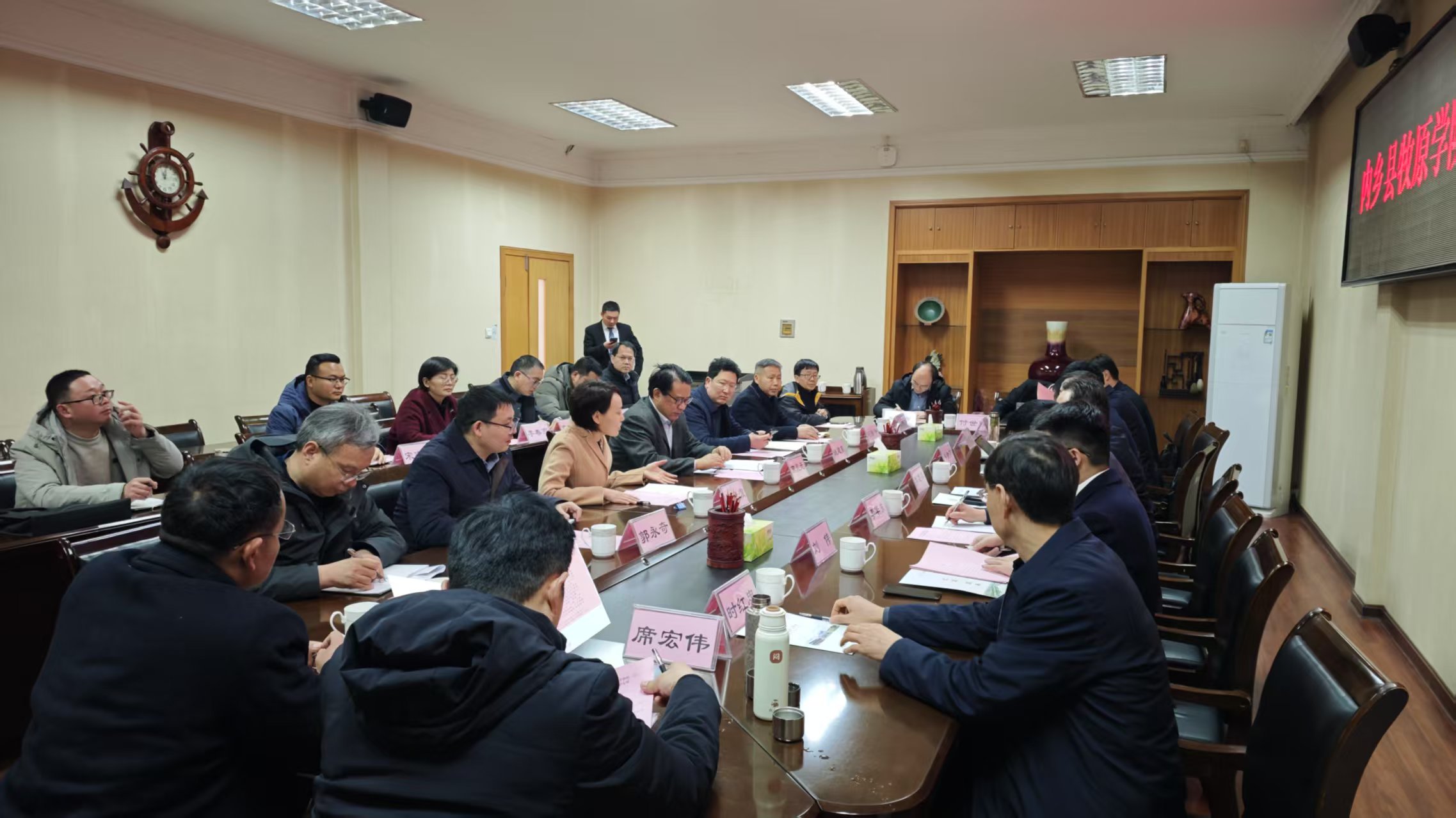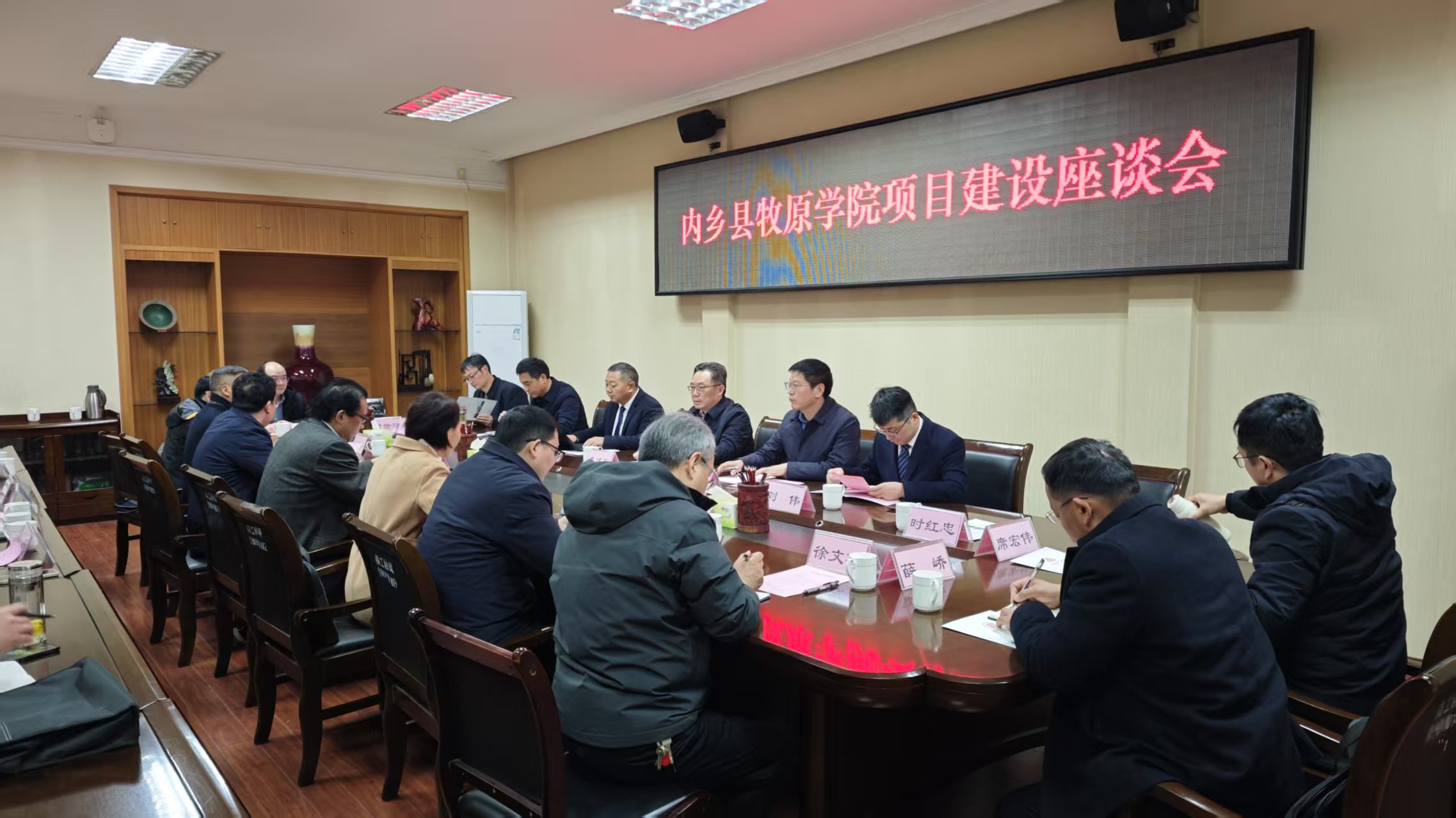 本网讯(特约记者/杨博竣)3月8日上午,内乡县政协主席李建兵、县委常委、宣传部部长、县政府副县长李华东、牧原集团融资部经理潘金万一行来校洽谈牧原学院项目共建事宜,副校长葛晨光主持召开座谈会,内乡县政府办、教体局、自然资源局、县职专、牧原集团法务部、牧原集团设计公司、牧原集团内乡子公司、南阳理工学院发展规划处、教务处、财务处、招生就业处、范蠡商学院、土木工程学院有关负责同志参加座谈。